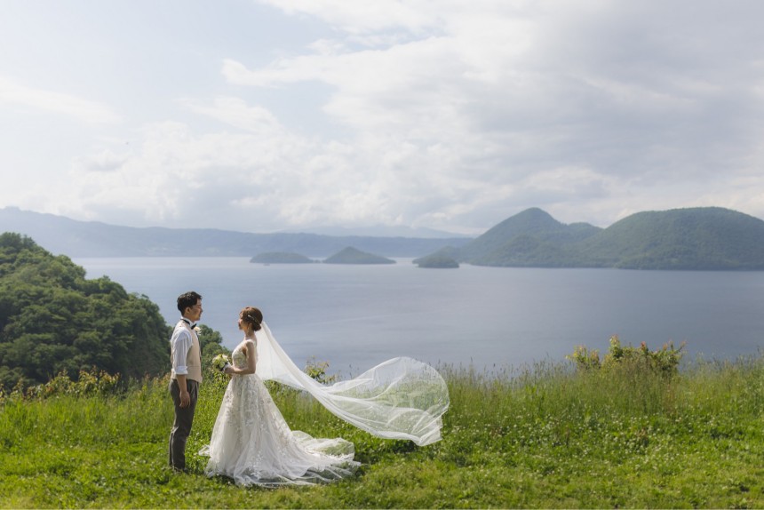 洞爺湖 鶴雅リゾート 洸の謌では、雄大な洞爺湖を背景にお二人の特別なお写真を撮影する