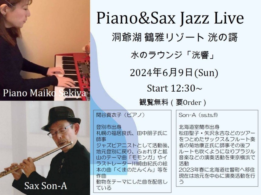 洞爺周辺を拠点に活動するアーティストたちの生演奏をぜひお聞きください。