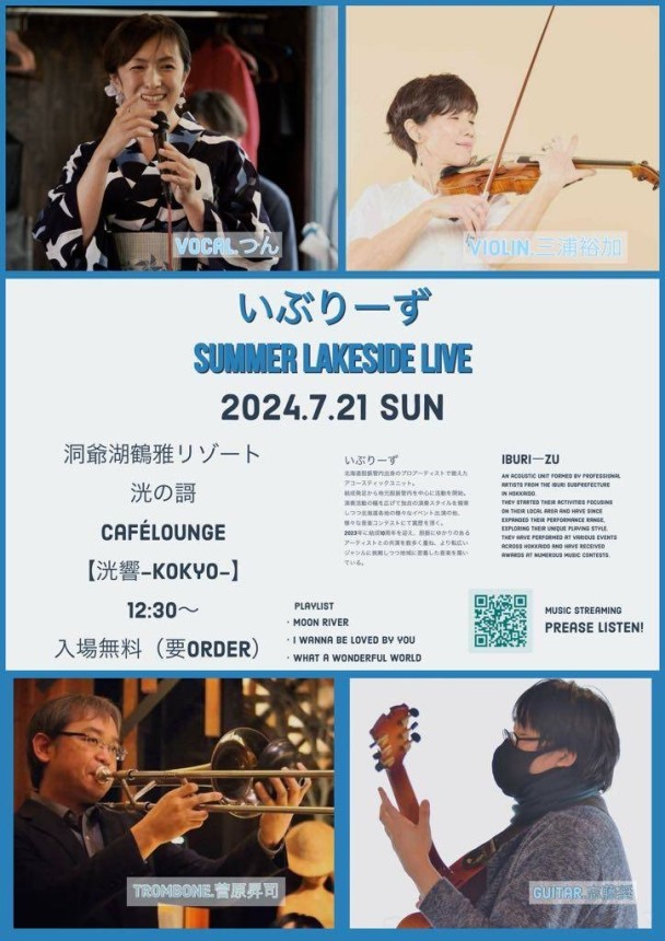 洞爺周辺を拠点に活動するアーティストたちの生演奏をぜひお聞きください。