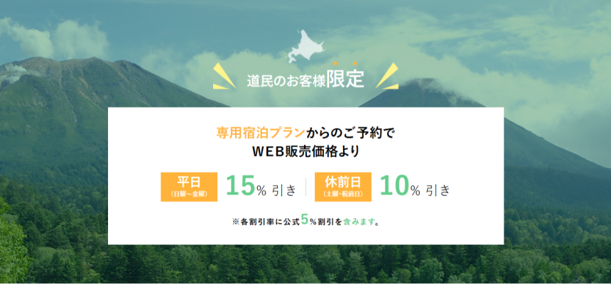 道民専用宿泊プランからのご予約で、WEB販売価格より
