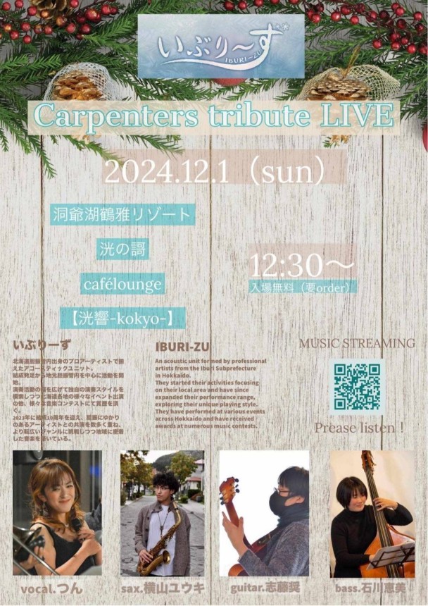 洞爺周辺を拠点に活動するアーティストたちの生演奏をぜひお聞きください。