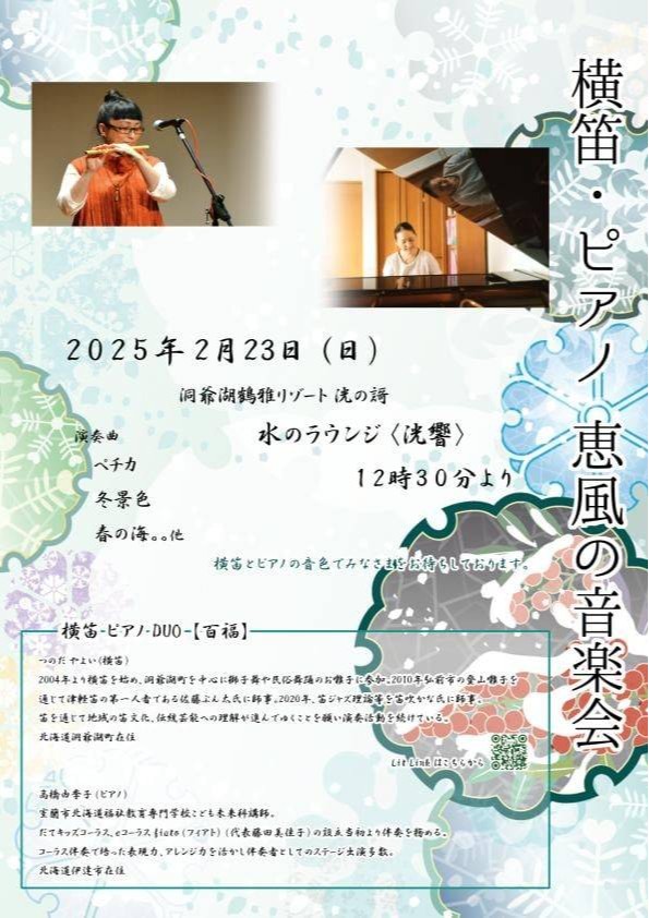 洞爺周辺を拠点に活動するアーティストたちの生演奏をぜひお聞きください。