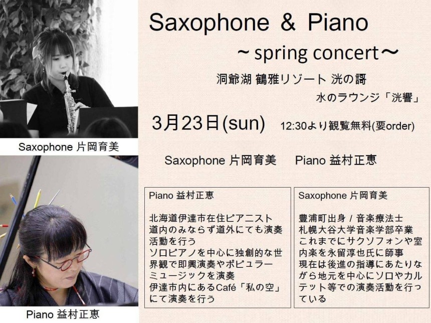 洞爺周辺を拠点に活動するアーティストたちの生演奏をぜひお聞きください。