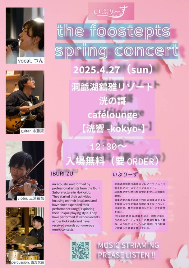 洞爺周辺を拠点に活動するアーティストたちの生演奏をぜひお聞きください。