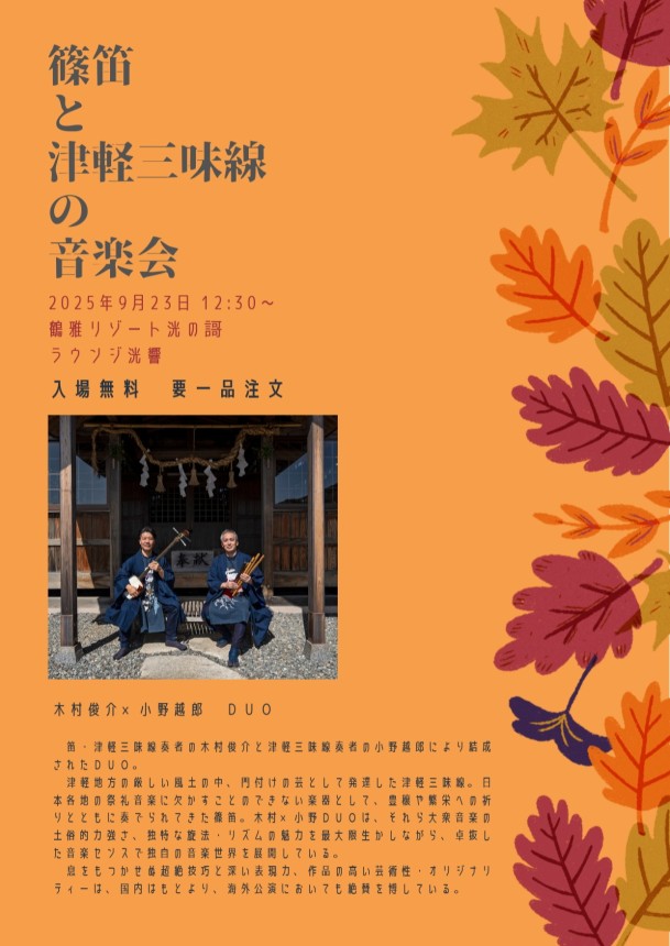 【洸の謌】水のラウンジ洸響 9月の昼LIVE情報