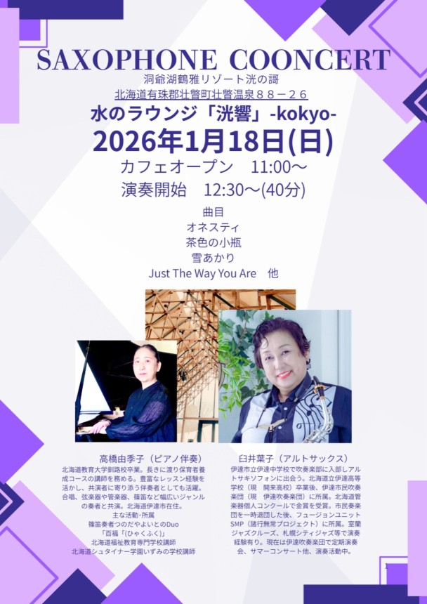 洞爺周辺を拠点に活動するアーティストたちの生演奏をぜひお聞きください。